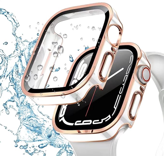 AIYYXX アップルウォッチ カバー40mm 44mm 41mm 45mm対応 アップルウォッチ 本体 防水 一体型 新デザイン 3D直角エッジ 超薄型 PC+ガラス素材 高透過率apple watch カバーキズ防止 簡単に取り付け・取 全面保護 apple watch ケース(41mm,光沢防水のホワイト&ローズゴールド)