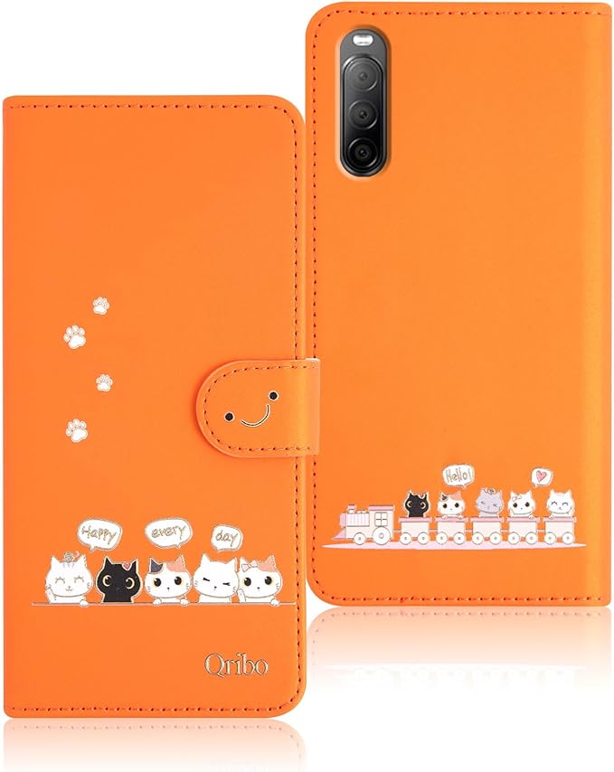 Qribo Xperia 10 II ケース 手帳型 ソニー エクスペリア 10 ii カバー SO-41A SOV43 ケース シンプルなのに可愛いデザイン エンボス加工猫柄 うれしい気持ち 6.0インチ対応 エクスペリア SO41A カバー Xperia 10 ll スマホケース エクスペリア 10 II ケース 薄型 防水 の耐久性 滑り防止 美しい 贈り物 友達 - オレンジ