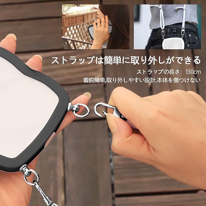【ネックレスケース】シリコンケースには首から下げられるようにショルダーストラップが付いており、まるでアクセサリーのようにスマホを着用できます。落下防止はもちろん、紛失防止にも役立ちます。 特に旅行や、小さなお子様がいるお母さんにおすすめ、手荷物がある時にスマホを持ち続ける必要がなくなりますし、スマホを落としたり無くしたりといった心配もなくなります、バッグから携帯を取り出す手間がはぶけます。