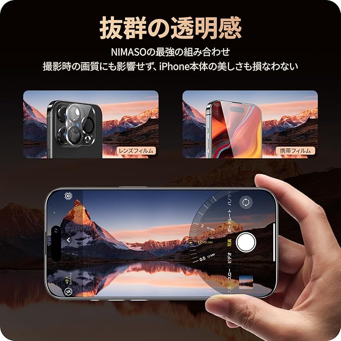 【組み合わせセット】フィルム製品で大人気のNIMASOがついに、液晶保護フィルムと レンズ保護フィルムの組み合わせを出品いたしましたスクリーンとレンズを両方保護。 この組み合わせセットで大事なスマホを徹底的に守りましょう。それぞれフィルムが二枚ずつあり、スクリーン保護フィルムにはさらに「ガイド枠」もついております。貼り付け時にず れる心配はありません