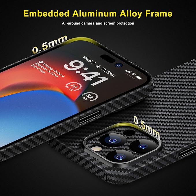 iPhone 15 Pro Max対応アラミド繊維ケース memumi 0.5mm極薄 耐衝撃 全面保護カバー ワイヤレス充電対応 ミニマリスト シンプル 6.7インチ