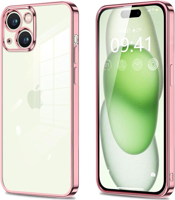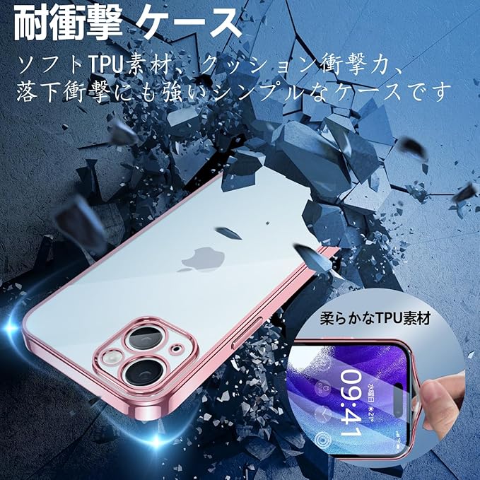 iPhone15 用 ケース クリア 透明 スマホケース カバー 薄型 耐衝撃 軽量 TPU メッキ加工 ソフトケース 人気 アイフォン15 保護カバー(ローズゴールド)