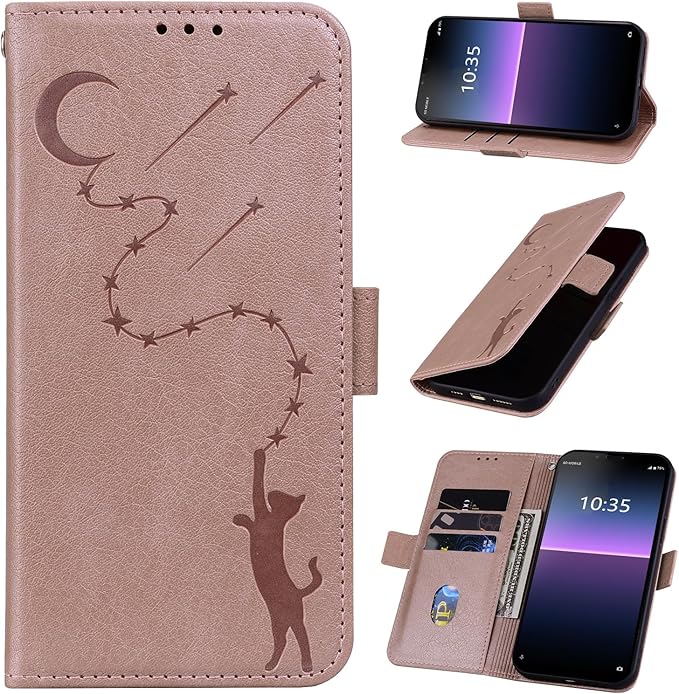 Xperia ace iii ケース 手帳型 so53c ケース エクスペリアエース3 ケース SOG08 A203SO ケース スタンド機能 かわいい猫柄のケース 薄型 ソニー Xperia ace iiiカバー 軽量 防水 柔らかいTPU レザー エクスペリア ace iii カバー - ローズパウダー