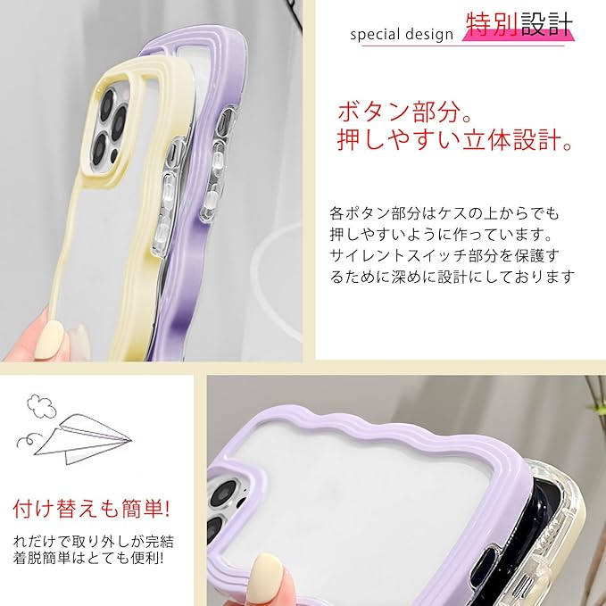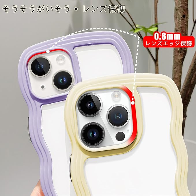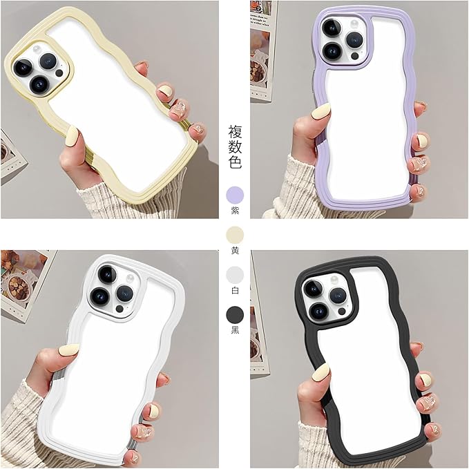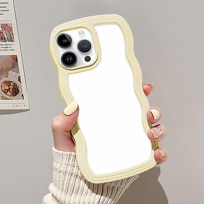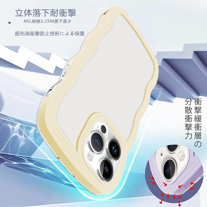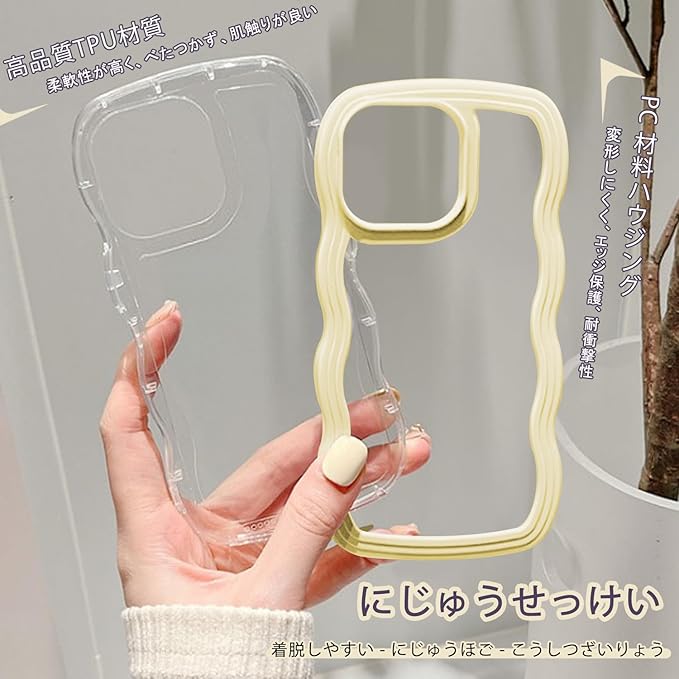 iPhone 15 Pro ケース クリア iPhone15 pro スマホケース 透明 ワイヤレス充電 可愛い ウェーブ デザイン アイフォン15 Pro カバー 耐衝撃 滑り止め ストラップホール付き 黄 ソフト 落下防止 きいろ