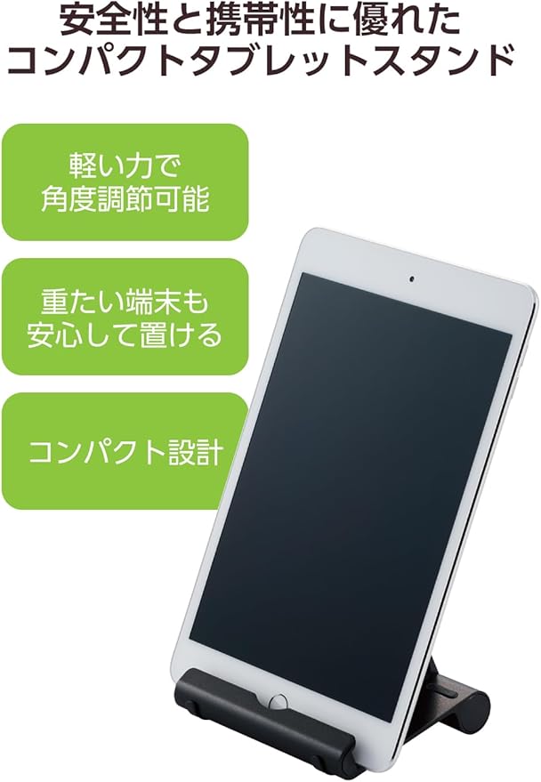 重い端末でも安定して置けるスマートフォン・タブレット用コンパクトスタンドです。