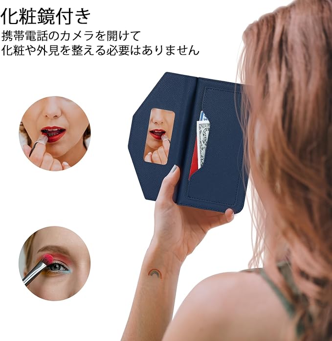 【高級皮革】高品質のPUと柔軟なTPUシェルを組み合わせて、スタイリッシュな外観、快適で滑らかなライン、優れた放熱性と耐衝撃性、優れた耐傷性と防塵性能を備えています. 変形しにくく、取り外しも簡単なので、スマホ自体を傷つける心配もありません。注意:化粧鏡の素材は柔らかい。