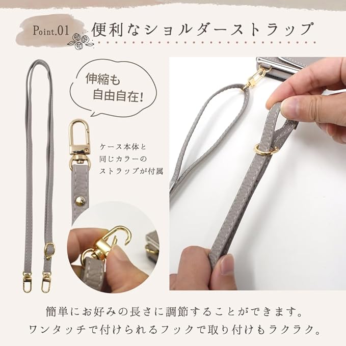 シズカウィル iPhone 15 Pro 用 ケース ショルダー カバー ショルダーストラップ アイファンデ5 ショルディー ドレスコード 1個入り サンドベージュ