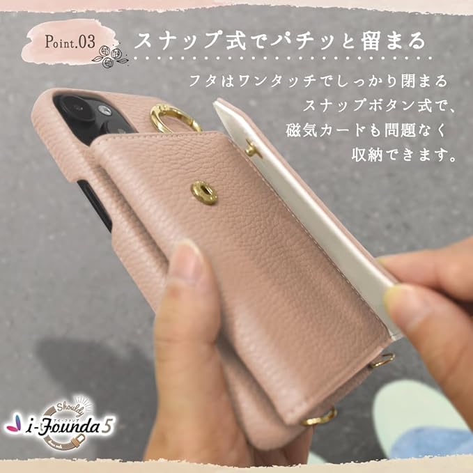 シズカウィル iPhone 15 Pro 用 ケース ショルダー カバー ショルダーストラップ アイファンデ5 ショルディー ドレスコード 1個入り コーラルピンク