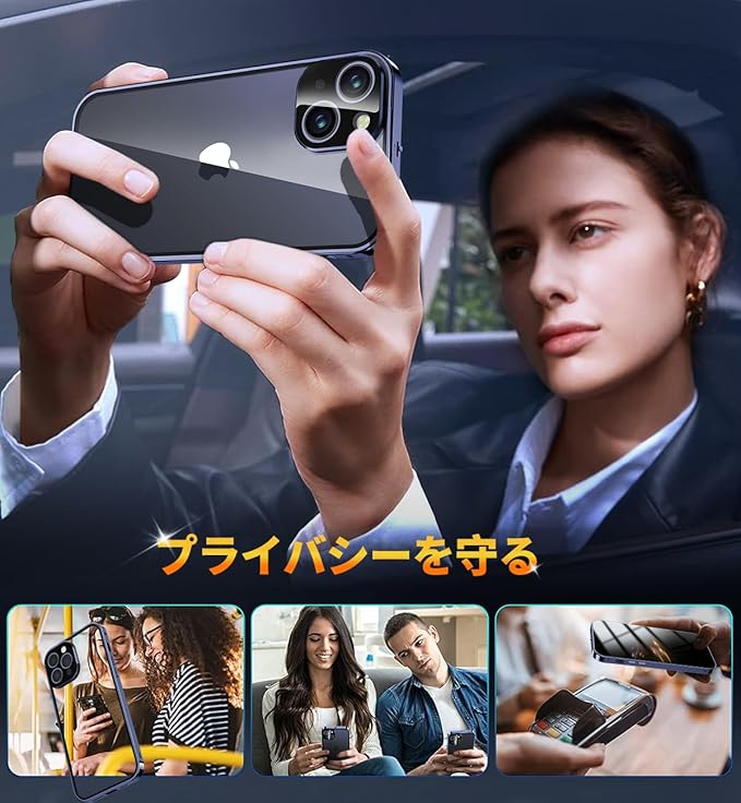 HGUTREY【覗き見防止・自動ポップアップボタン】 iPhone15 用 ケース 【ロック付き】【ストラップホール付き】一体型レンズ保護 両面9H強化ガラス あいふぉん15ケース 耐衝撃 アルミ バンパー メタルフレーム スマホケース 薄型 背面クリア 高感度タッチ 軽量 すり傷防止 ワイヤレス充電対応 アイフォン15 用 カバー 6.1インチ(ディープブルー)
