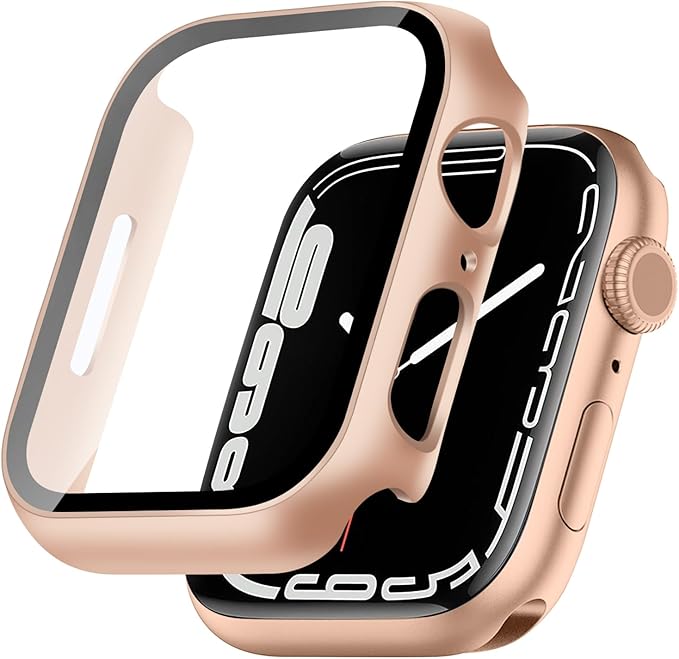 TEMEDO 対応 アップルウォッチ カバー Series SE2/SE/6/5/4 Apple Watch ケース PC素材 Apple Watch カバー ガラスフィルム 一体型 アップルウォッチ ケース 全面保護 高耐久 高透過率 装着簡?(44mm,ローズゴールド)