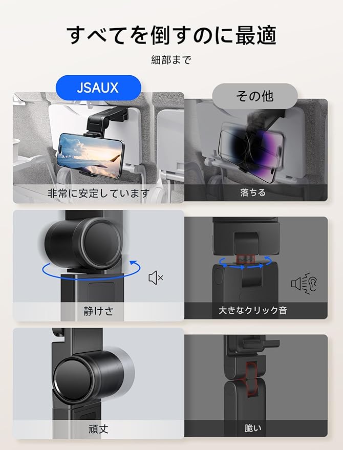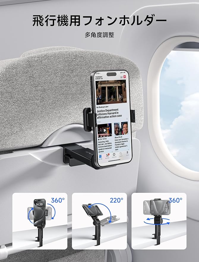 JSAUX 飛行機旅行必需品 飛行機電話ホルダー 360度回転飛行機電話ホルダー ユニバーサルフライト飛行機電話マウント ハンズフリー旅行電話ホルダー 飛行の必需品