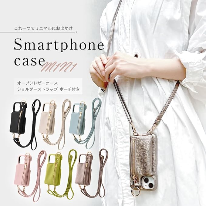 デジタルアルキミスト iPhone 15 Pro ケース オープンレザーケース ショルダーストラップ ポーチ付き m1n1 ピスタチオ