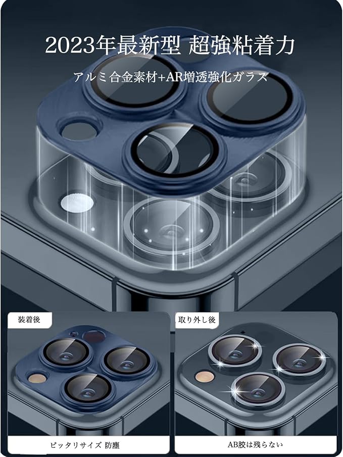 【保護性高い】:カメラフィルムはスマホのレンズ部分の全体覆われている,三つレンズの真ん中にAR超高透過率ガラスを採用され、レンズフィルムの周りにアルミニウム材質で擦り傷や衝撃からカメラレンズをしっかりと守られます。アルミ合金製なので 耐久性は普通のガラス製のカメラフィルムより5倍UP