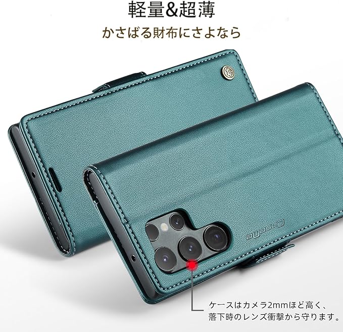 【FeeY】Galaxy S23Ultra手帳型 ケースSamsung galaxy S23Ultraケース 手帳型 SC-52D SCG20 スマホケース 手帳型 携帯カバーサイドマグネット式 スタンド機能 全面保護 耐衝撃 カード収? 人気 上質 財布型 (グリーン)