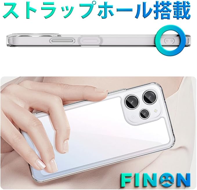 FINON シャオミ Xiaomi Redmi 12 5G ケース カバー スマホケース クリア クリアケース ハイブリッド ケース 指紋認証可能モデル 耐衝撃 シンプル (クリア)
