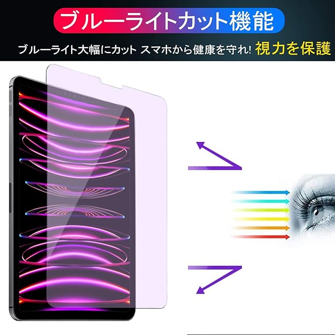 【ブルーライトカット】iPad Pro 12.9(2022 M2 / 2021 / 2020 / 2018)用 保護 フィルム 12.9インチ 目の疲れを軽減 強化 ガラス 液晶保護 フィルム 飛散防止 指紋防止 気泡防止 撥水撥油 旭硝子 強靭9H