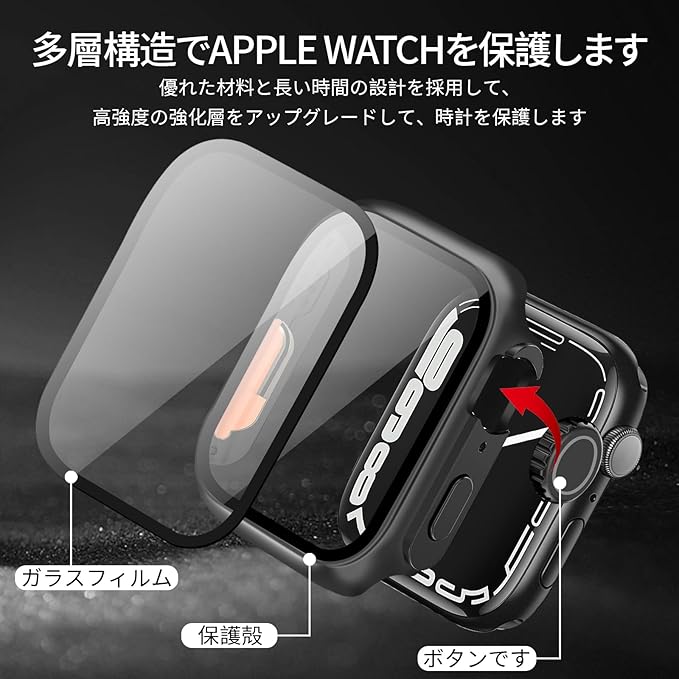★高品質素材:Apple Watch ケースは日本製旭硝子フィルムと艶消し黒いのバンパーを採しています。本製品は100000回以上もテストされており、摩擦および衝撃による損傷はなく、スマートウォッチ本来の美しさをそのまま