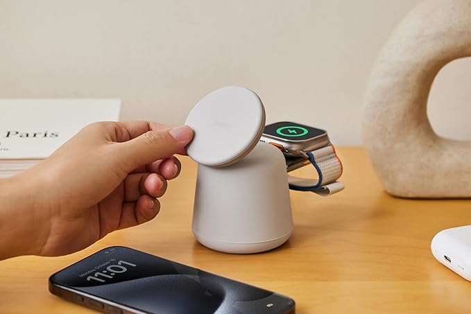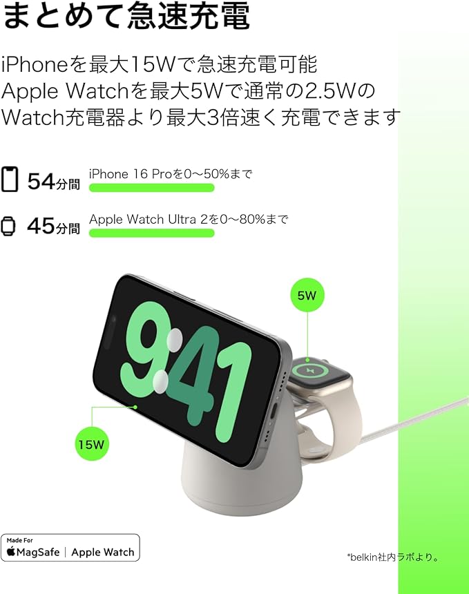 Belkin [Apple公認] 2 in 1 MagSafe充電器【Apple Store取扱製品】最大15W高速充電 ワイヤレス充電器 MagSafe公式認証 iPhone 16/15/14/13/12 Apple Watch 9/8/7/Ultra 高速充電対応 USB-Cケーブル付属(1.5m) AC電源アダプタの付属なし サンド WIZ020btH37