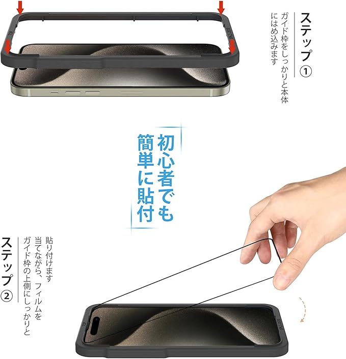 【対応機種】iPhone 15 Pro(アイフォン 15プロ)用。初めての方でも簡単に貼り付けられるよう、専用のガイド枠付き。機種の選択には間違いがないよう、ご注文前によくお確かめください。