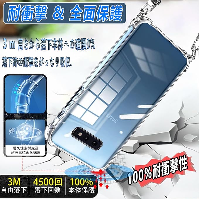 Cokkas Galaxy S10 ケース SC-03L/SCV41 ケース ギャラクシーs10 ケース ショルダー [ストラップ2本付き] 紐付き 肩がけ 首掛け 縄掛け galaxys10 スマホケース ストラップホール付き 薄型 透明 ハード PC+シリコン TPU バンパー 耐衝撃 米軍MIL規格 長さ調整可能 s10カバー(クリア)