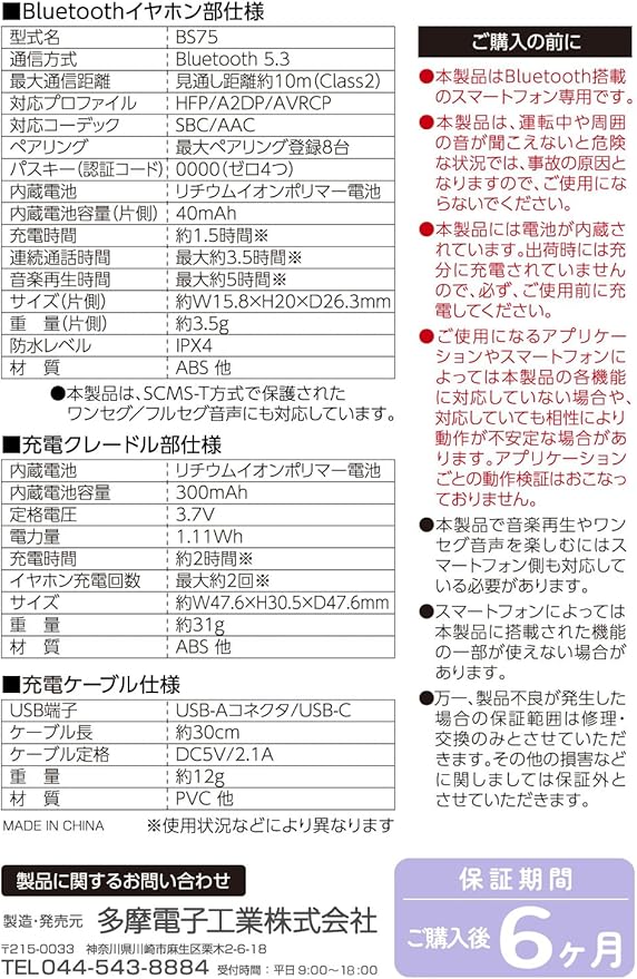 対応プロファイル:HFP/A2DP/AVRCP