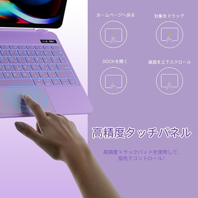 「マジックキーボード」SUKEBONマジックキーボードは技術基準適合証明認証済み、商品の安全性をできます。快適にタイピングできるキーボード、iPadOSでの作業方法を広げるトラックパッド、充電ができるUSB-Cポートを搭載。磁気設計で、クイックセットができ、畳むとスクリーンは自動的にスリープ状態になります。使わない時に電力の無駄消耗を防止できます。デバイスの前面と背面を守る頑丈なカバーにもなります。