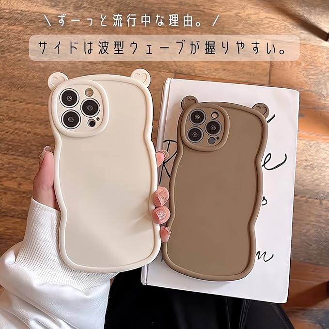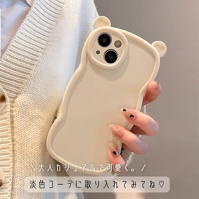 saymi クマ 耳 ハート ウェーブ おしゃれ 韓国 iPhone15 ケース すべすべマットな手触り 可愛いシルエット 淡色 ミルク ホワイト チョコ ブラウン 茶色 アイボリー (ミルクホワイト, iPhone15)