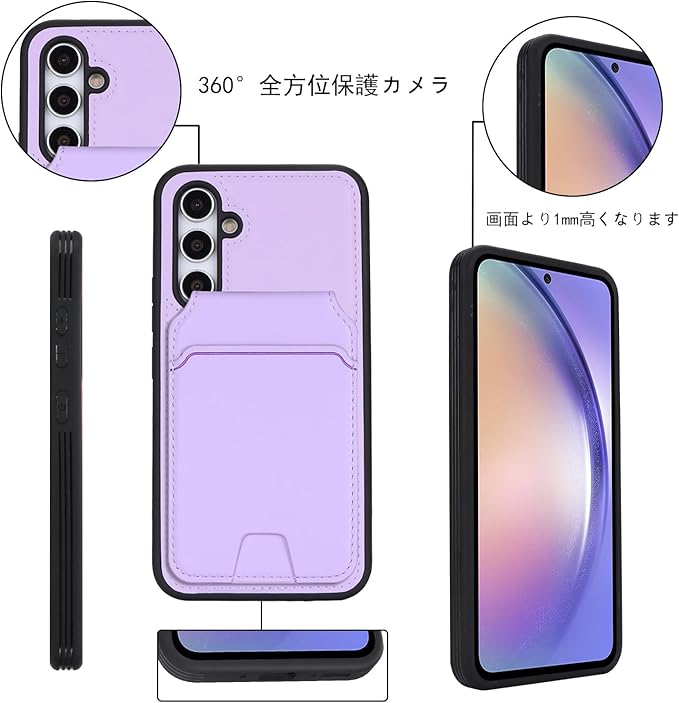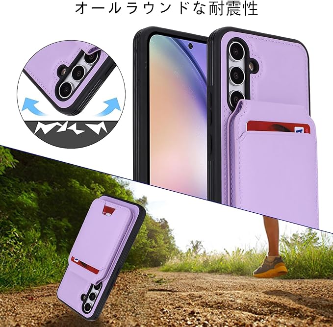 Havaya Galaxy A54 5G ケース ギャラクシーA54 5g ケース SC-53D 耐衝撃 SCG21 au A54 5G 背面 カード収納 分離式 取り外し可能 フェイクレザー-パープル