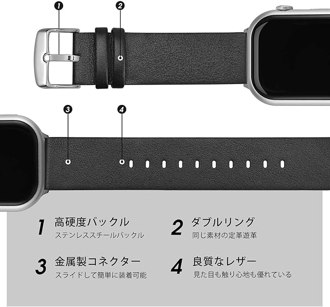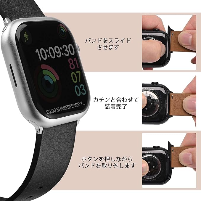 [MABEKS] コンパチブル アップルウォッチ バンド 49mm 45mm 44mm 42mm 41mm 40mm 38mm, 本革交換ストラップ アップルウォッチ Ultra2 Ultra SE2 SE シリーズ9 8 7 6 5 4 3 2 1に対応1