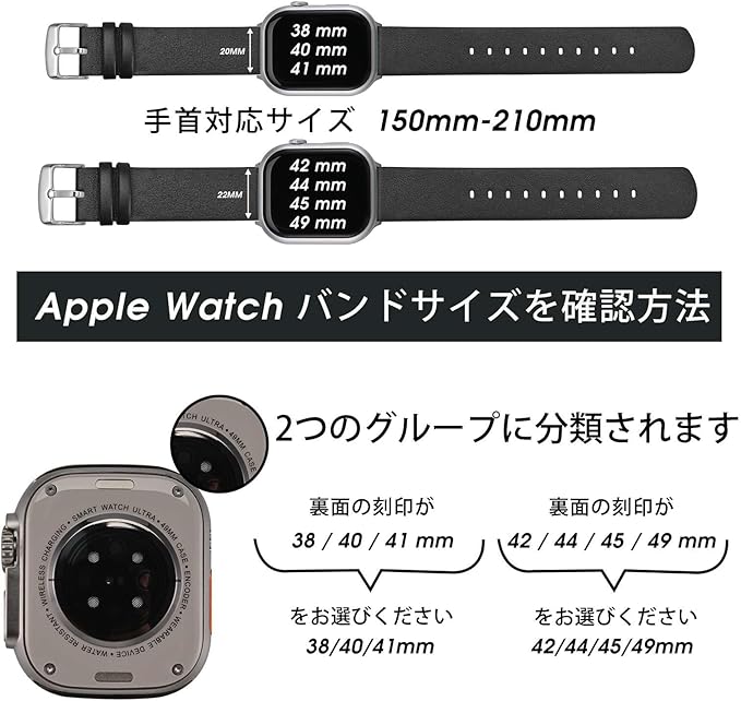 [MABEKS] コンパチブル アップルウォッチ バンド 49mm 45mm 44mm 42mm 41mm 40mm 38mm, 本革交換ストラップ アップルウォッチ Ultra2 Ultra SE2 SE シリーズ9 8 7 6 5 4 3 2 1に対応
