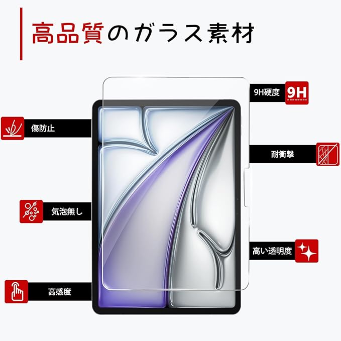 BERSEM iPad Air 11インチ M3 2025 / M2 2024 対応 強化ガラスフィルム [自動校正専用貼り付けガイド枠付き] [9H硬度] [高い透明度] [傷防止] [対応ケース] [気泡防止] 保護フィルム-1枚