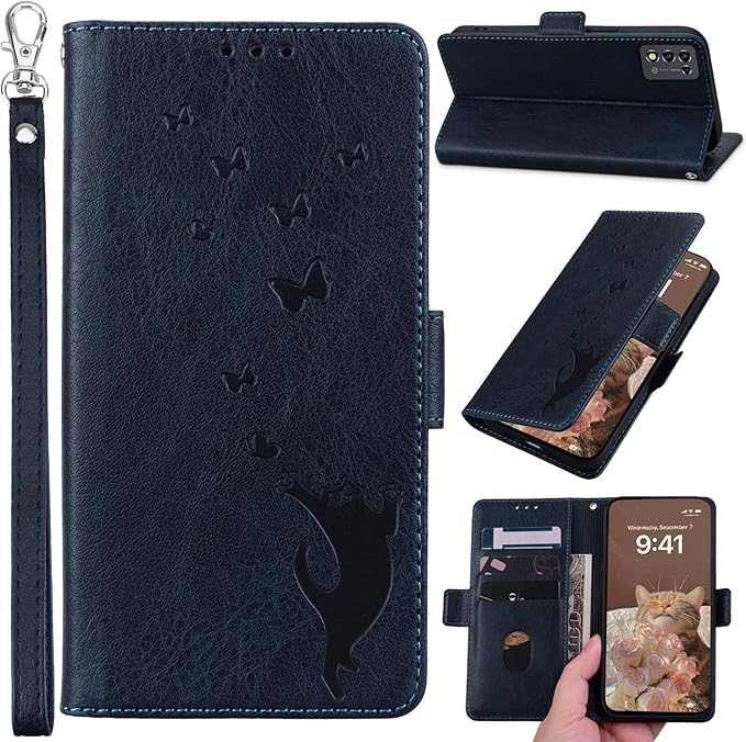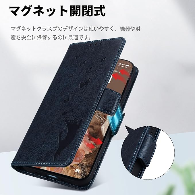 ZTE Libero 5G III ケース 手帳型 a202zt ケース 手帳型 リベロ5g3 スマホケース 手帳型 リベロ 5g3 ケース libero 5g iii スマホケース 蝶と猫の3Dパターン スタンド カード収納 リストストラップ プレミアム耐久性PUレザー 強い磁気吸引 リストストラップ 落下防止 libero 5g iii カバー A202ZT カバー[ステディブラック]
