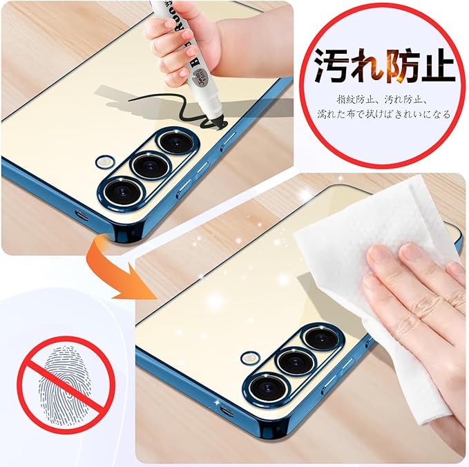 Galaxy S24 ケース クリア 青 ギャラクシーs24 SC-51E SCG25 カバー 透明 耐衝撃 軽量 薄型 tpu 背面クリア 青縁 メッキ加工 スマホケース ソフト ストラップホール付き ワイヤレス充電対応(galaxyS24,