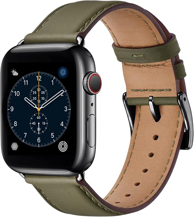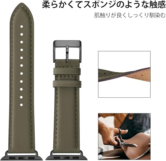 コンパチブル アップルウォッチ バンド 革 46mm 42mm 44mm 45mm 49mm 40mm 41mm 38mm コンパチブル Apple Watch バンド 本革 レザー ビジネス 男女兼用 コンパチブル iWatch Ultra/Ultra2/SE/SE2/Series10/9/8/7/6/5/4/3/2/1に対応(アーミーグリーン・ブラック)