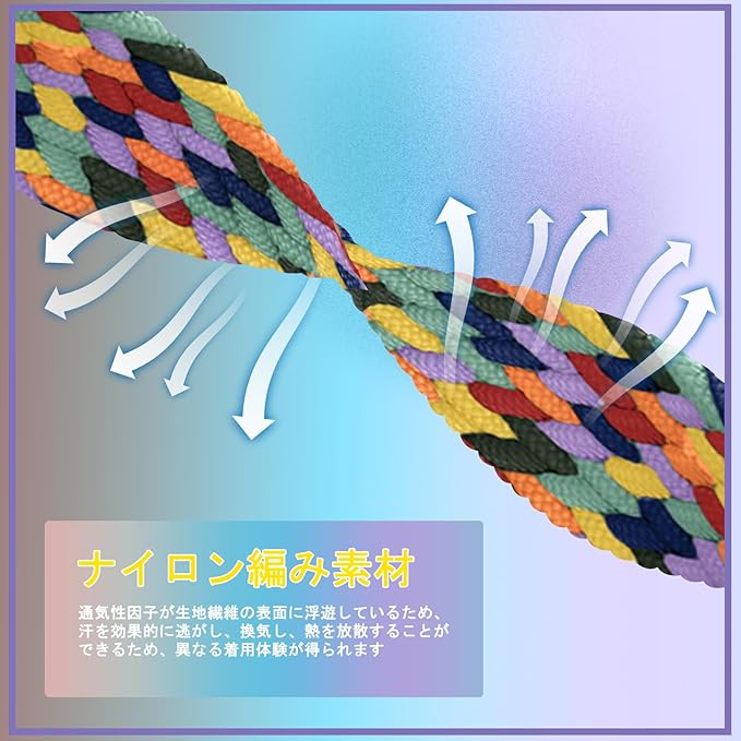 CeiBand バンド Apple Watch 49/45/44/42mm 用 交換ベルト 編み 腕時計バンド Apple Watch Ultra/Ultra 2 対応 弾力性 ベルト ナイロン 編み込み 磁気吸着式バックル スポーツバンド メンズ レディース 時計バンド スマートウォッチバンド iWatch SE/SE 2/Series 10/9/8/7/6/5/4/3/2/1 -(Wレインボー)