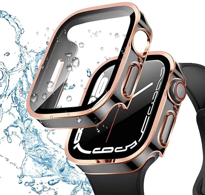 AIYYXX アップルウォッチ カバー40mm 44mm 41mm 45mm対応 アップルウォッチ 本体 防水 一体型 新デザイン 3D直角エッジ 超薄型 PC+ガラス素材 高透過率apple watch カバーキズ防止 簡単に取り付け・取 全面保護 apple watch ケース(44mm,光沢防水のブラック&ゴールド)