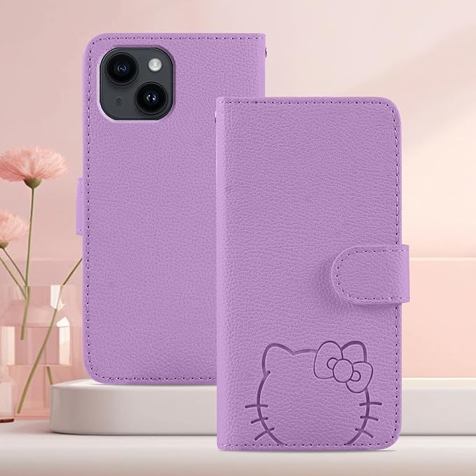 Kedic iPhone 15 ケース 手帳型 大きな花の顔の猫のパターン いphone15 ケース 手帳型 アイフォン15 カバー iphone15 スマホケース アイフォン15ケース iPhone15手帳型ケース の選択 指紋なし 適度な厚さ 軽量グリップ 柔軟性 より包括的な保護 スマホ スタンド パープル