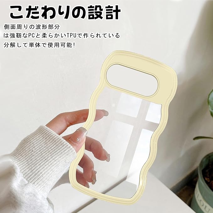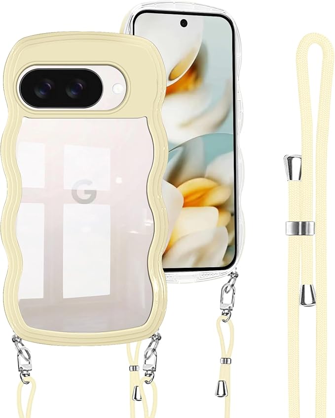 Google Pixel 9a 用 ケース クリア ショルダー グーグル ピクセル9a 用 カバー 透明 波状フレーム 首掛け 肩がけ 斜めかけ 紐付き ストラップ付き TPU 韓国 かわいい 可愛い 薄型 軽量 耐衝撃 バンパー pixel 9a 用 スマホケース (イエロー)