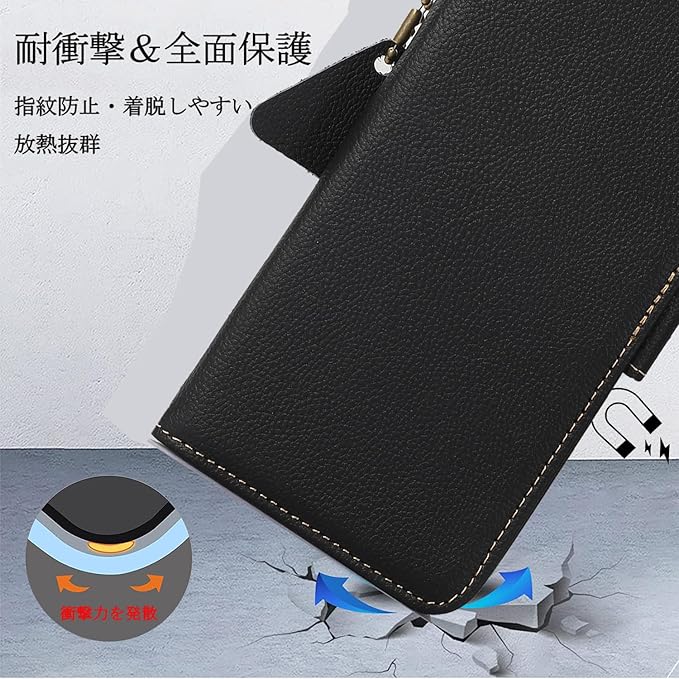 WANWO Nubia S 5G ケース 手帳型 本革 Nubia S 5G A403ZT カバー 財布型 高級牛革 放熱性 シンプル手帳カバー 便利なマグネット式 カード収納 容量 3枚 衝撃吸収 横向きスタンド機能 [RFIDブロッキング] 携帯カバー ブラック