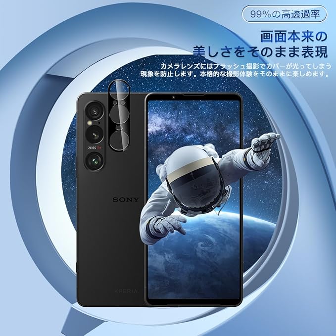 対応 Xperia 1 VII SO-51F / XQ-FS44 カメラカバー レンズフィルム 【2枚セット 日本旭硝子製】 対応 エクスペリア1 VII カメラフィルム 強化ガラス 保護カバー ケース 全面保護 硬度9H 耐衝撃 飛散防止 黒縁取り 3眼 レンズ保護カバー 露出オーバー防止 防塵 自動吸着 気泡ゼロ 貼り付け簡単 対応 Xperia 1 VII カメラ保護カバー