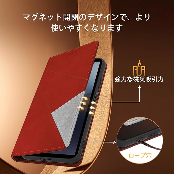 fagazzfu Sony Xperia 1 VII ケース 手帳型 全面保護 カード収納 エクスペリア 1vii スマホケース カード収納 スタンド機能付き 財布型 えくすへりあ 1VII SO-51F SOG15 携帯カバー レザー ラップホール付き 手触りが良い マグネット内蔵 擦り傷防止 人気 上質 ファッション (レッド)