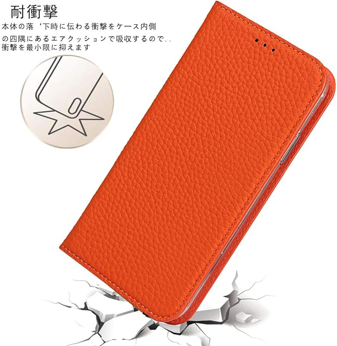 【上質の皮革+TPU】レザーケースは、レトロの表面(高品質のライチ紋真皮)+優しい裏面(柔軟なTPUカバー)と組み合わせ、衝撃吸収機能あり、プレミアムトップグレイン本革製の精密で、質感、強さ、キャラクターなどが厳選されています。。 丈夫で柔らかい感触。耐衝撃性 スタンド機能、耐衝撃性 ス