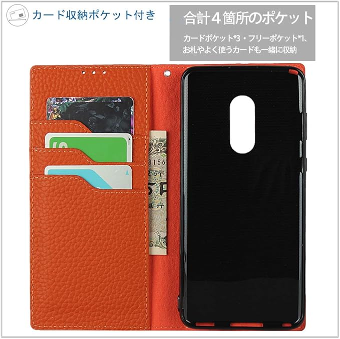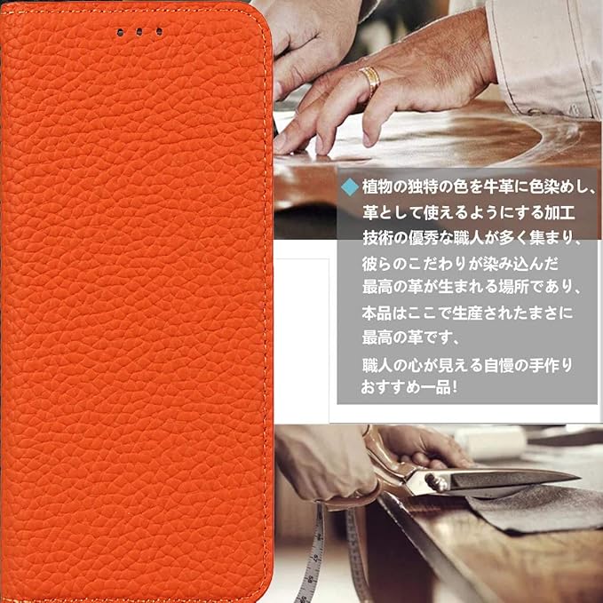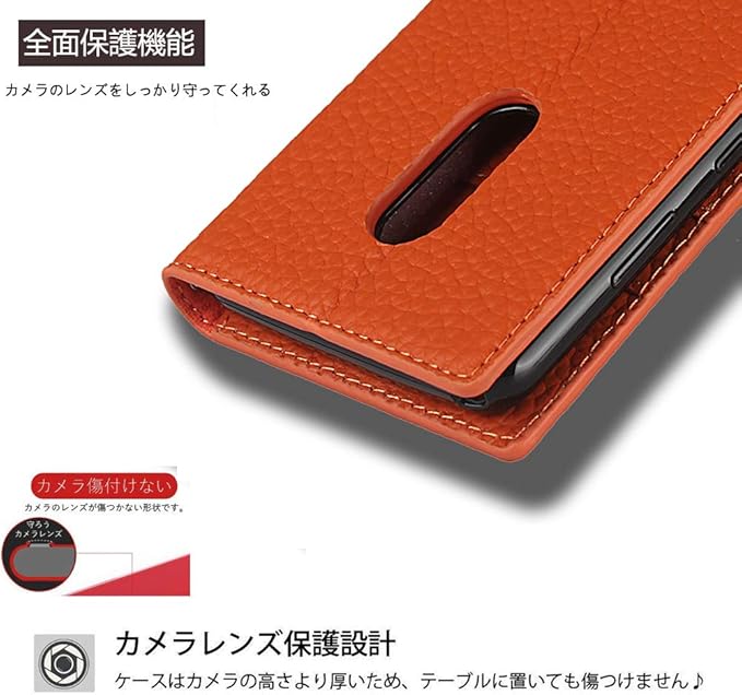 Cavor Xperia 1 V ケース 手帳型 SO-51D SOG10ケース 本革ケースXperia 1 Vケース手帳型Xperia 1 Vケースカード収納 SOG10財布型 カバーSO-51D 手帳型ケースSO-51Dカード収納 Xperia 1 V 携帯カバー Xperia 1 Vスマホケース ライチ紋真皮付きの専属ストラップ同梱なので 横置 内蔵マグネット【オレンジ】