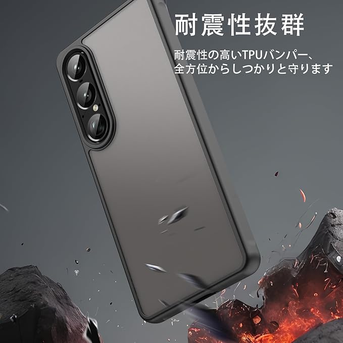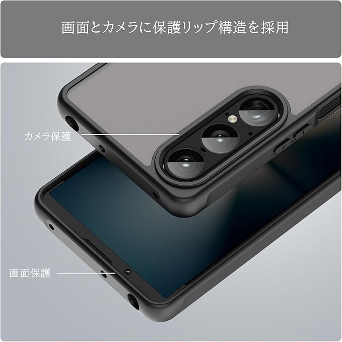 For xperia 1 vii ケース[YEZHU] TPU+半透明マットバックパネル素材製 薄型軽量 衝撃吸収 傷つけ防止 保護バンパー 弾力性付きxperia 1 vii 専用カバー (ブラック)