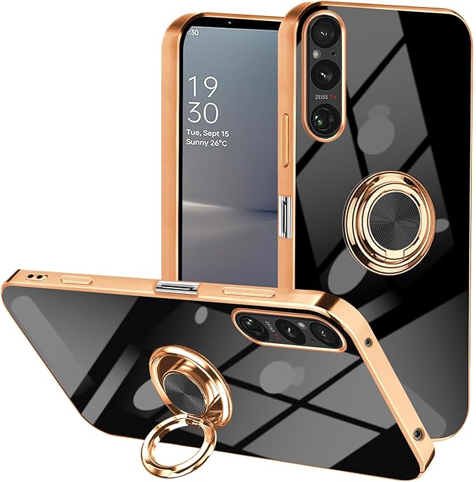 Sony Xperia 1 VI ケース リング付き TPU 耐衝撃 液状シリコン Xperia 1 VI SO-51E SOG13 カバー 薄型 軽量 米軍MIL規格取得 衝撃吸収 防指紋 スタンド機能 ストラップホール付き サラサラ触り心地 エクスペリア1 VI ケース