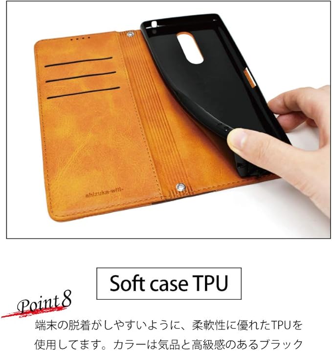 【シンプルレザーケースの特徴】 フェイクレザーを使用し、飽きのこないシンプルなデザインとなっております。本革のような手触りで、心地よく手にフィットします。