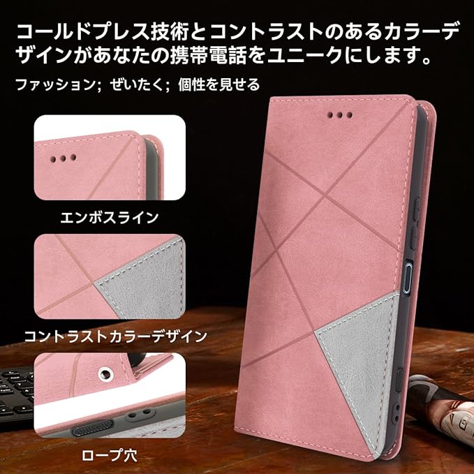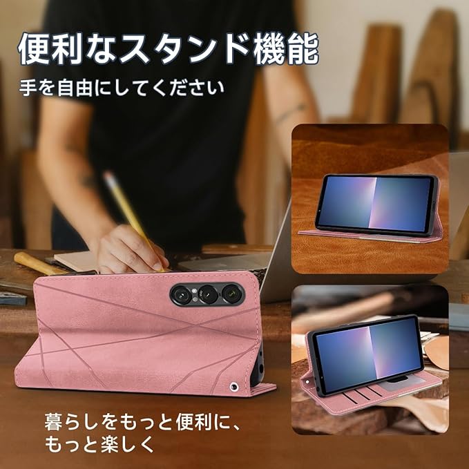 Sony Xperia 1 VII ケース 手帳型 財布型 耐衝撃 エクスペリア 1vii スマホケース カード収納 横置き機能 SO-51F SOG15 XQ-FS44 携帯カバー 横置きスタンド機能付 ラップホール付き マグネット内蔵 擦り傷防止 肌感レザー 防水 耐摩擦 ファッション (ローズゴールド)
