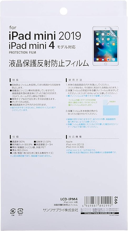 サンワサプライ iPad mini 4用液晶保護反射防止フィルム LCD-IPM4