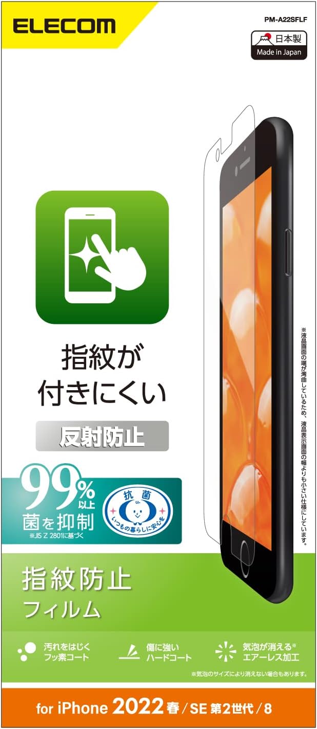 エレコム iPhone SE (第2世代/第3世代) / 8 / 7 / 6s / 6 用 フィルム 指紋防止 アンチグレア PM-A22SFLF クリア ポリエチレンテレフタレート
