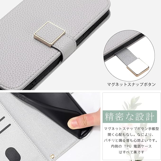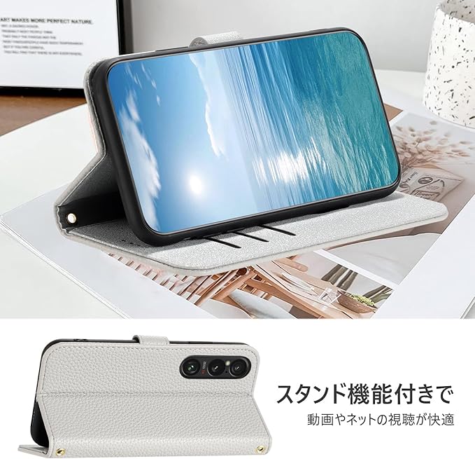 【カード収納とスタンド機能】ケース動画視聴に便利なスタンド機能が付き、横向いて斜めに立てて、お好きな角度を調整でき、両手が解放され、お気軽に読書やビデオの観賞を楽しむことができます。内側には3つのカード入れとフリーポケットがつき、名刺や定期券の収納に優れている 携帯カバーです。